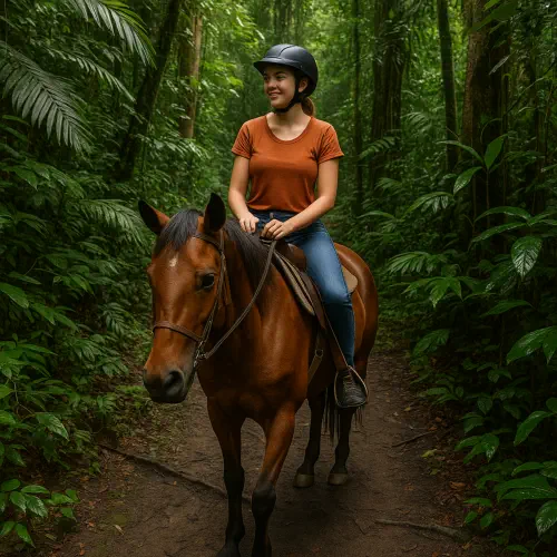 Meander along scenic jungle trails, cross hidden creeks, and spot tropical wildlife—all while enjoying the natural rhythm of the forest from the back of a well-trained horse. Perfect for all experience levels, this ride is as relaxing as it is unforgettable.