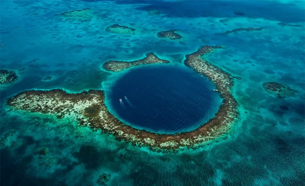 This mesmerizing giant underwater sinkhole lies in the heart of the Lighthouse Reef Atoll. It’s a near-perfect circle—over 300 meters wide and more than 120 meters deep. Its vivid sapphire color and sheer depth make it one of the most recognizable dive sites in the world.